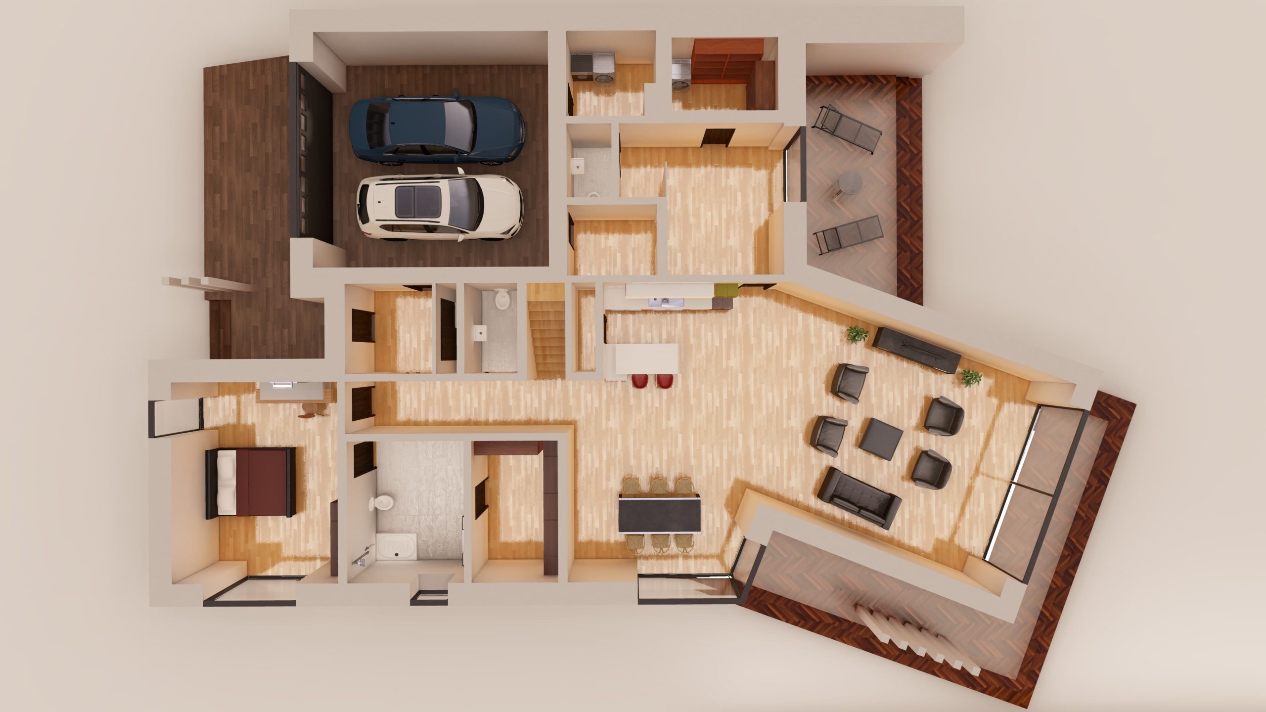 Kuća ima integriranu garažu za jedan automobil, a prema vašim potrebama moguće je projektirati i dodatnu natkrivenu nadstrešnicu za drugo vozilo.