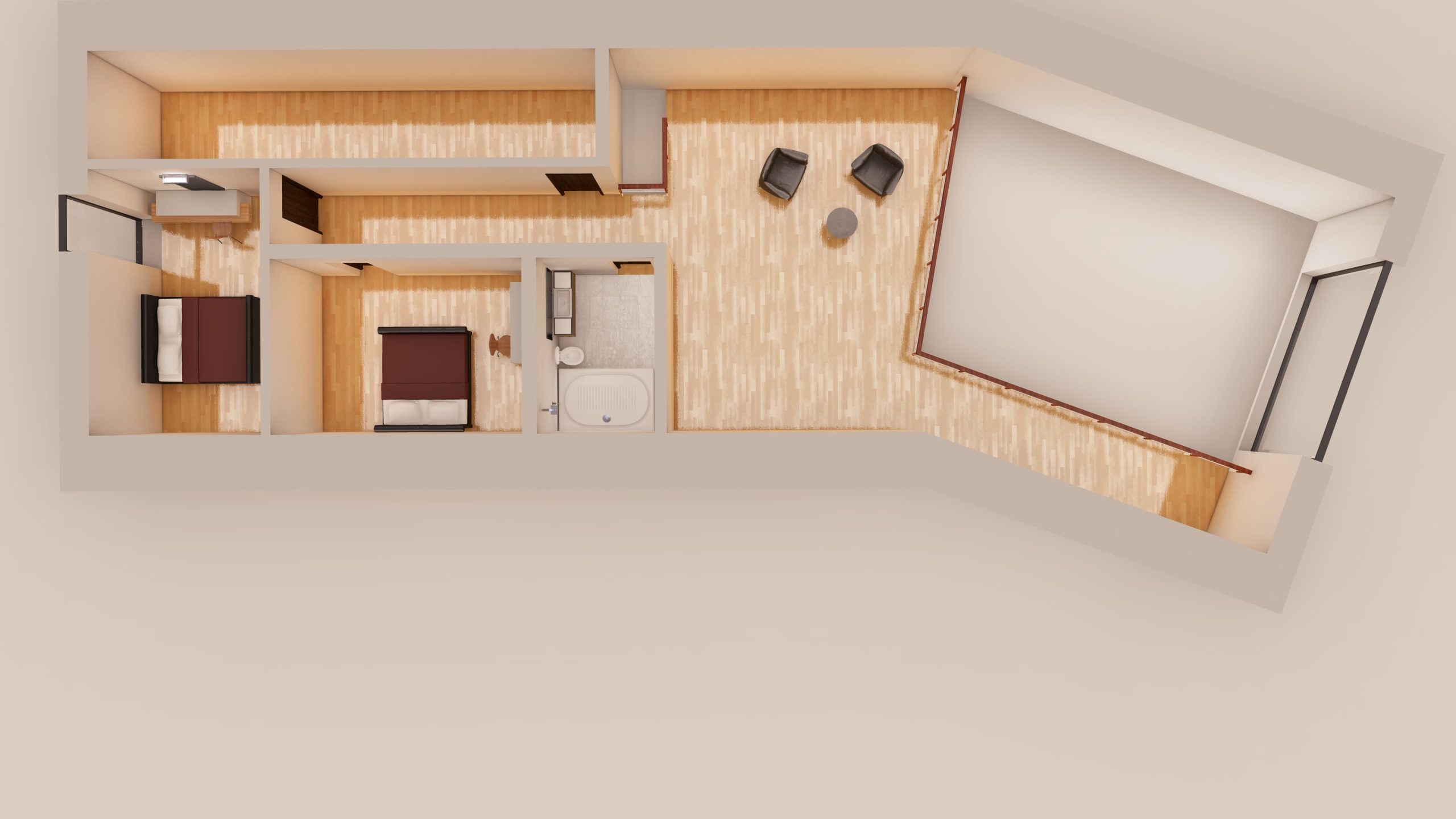 Na katu su smještene tri prostrane spavaće sobe, radna soba te moderna kupaonica. Svaka soba ima pogled na prirodu, a krovni prozori osiguravaju dodatnu svjetlost i prozračnost. Ovakav raspored omogućuje mir i privatnost za svakog č lana obitelji, dok radna soba pruža idealan prostor